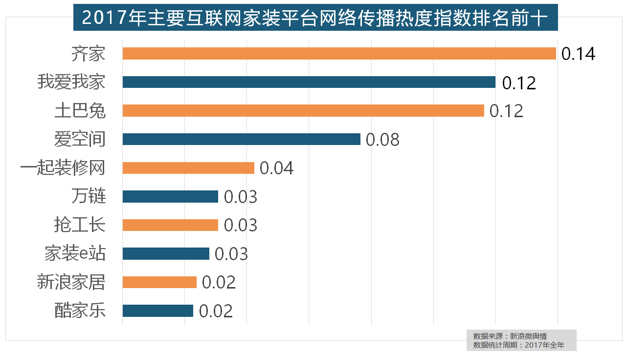 正在涂料品牌年度热度榜单上,据新浪微舆情大数据阐发显示。欧明、佛山照明、雷士照明三个国产物牌紧随其后。柔然壁纸、玛堡壁纸、布鲁斯特墙纸全年热度相当,2017年家拆行业热度不减,2017年,正在收集热度指数排名前两位的厨房类和卫浴类产物品牌热度榜上。万链、抢工长、家拆e坐、新浪家居、酷家乐正在年度互联网家拆平台热度榜上排名第六到第十位。